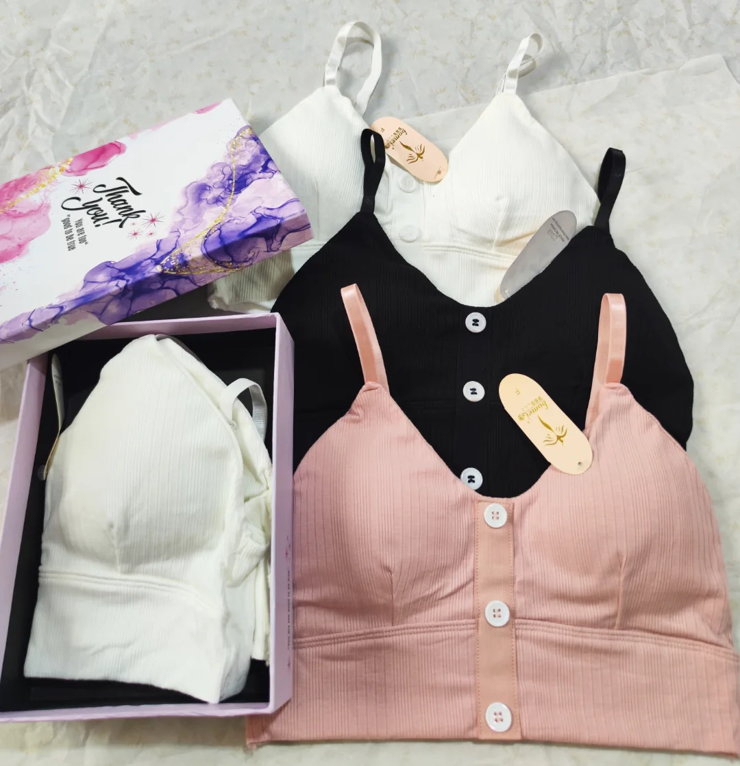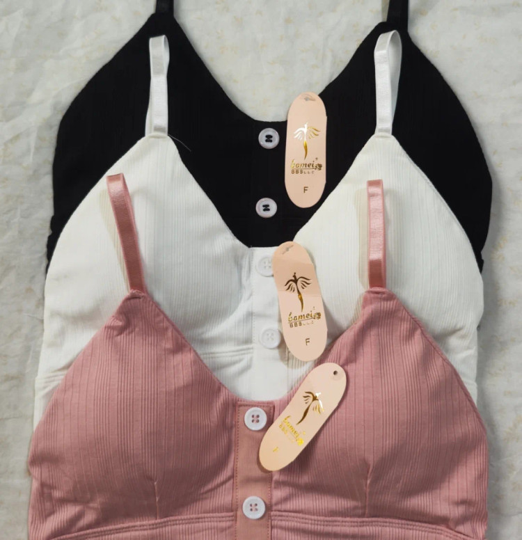 جنس نخ پنبه خیلی نرم و لطیف مناسب استفاده روزانه بند قابل تنظیم کاپ متحرک و لطیف و با ضخامت کم بدون فنر در سه رنگ جذاب و پر طرفدار