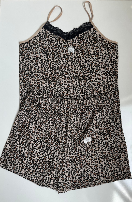 ست تاپ و شورتک دانتل دار، طرح پلنگی، نخ پنبه گرم بالا